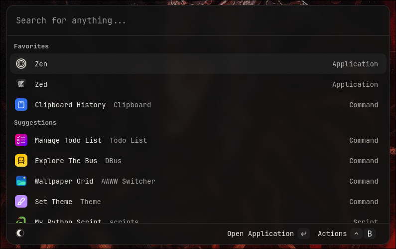 Vicinae is a keyboard-driven command launcher for Linux, inspired by Raycast. It puts common actions within keyboard reach: launching apps, switching windows, managing clipboard history, searching files, and more.